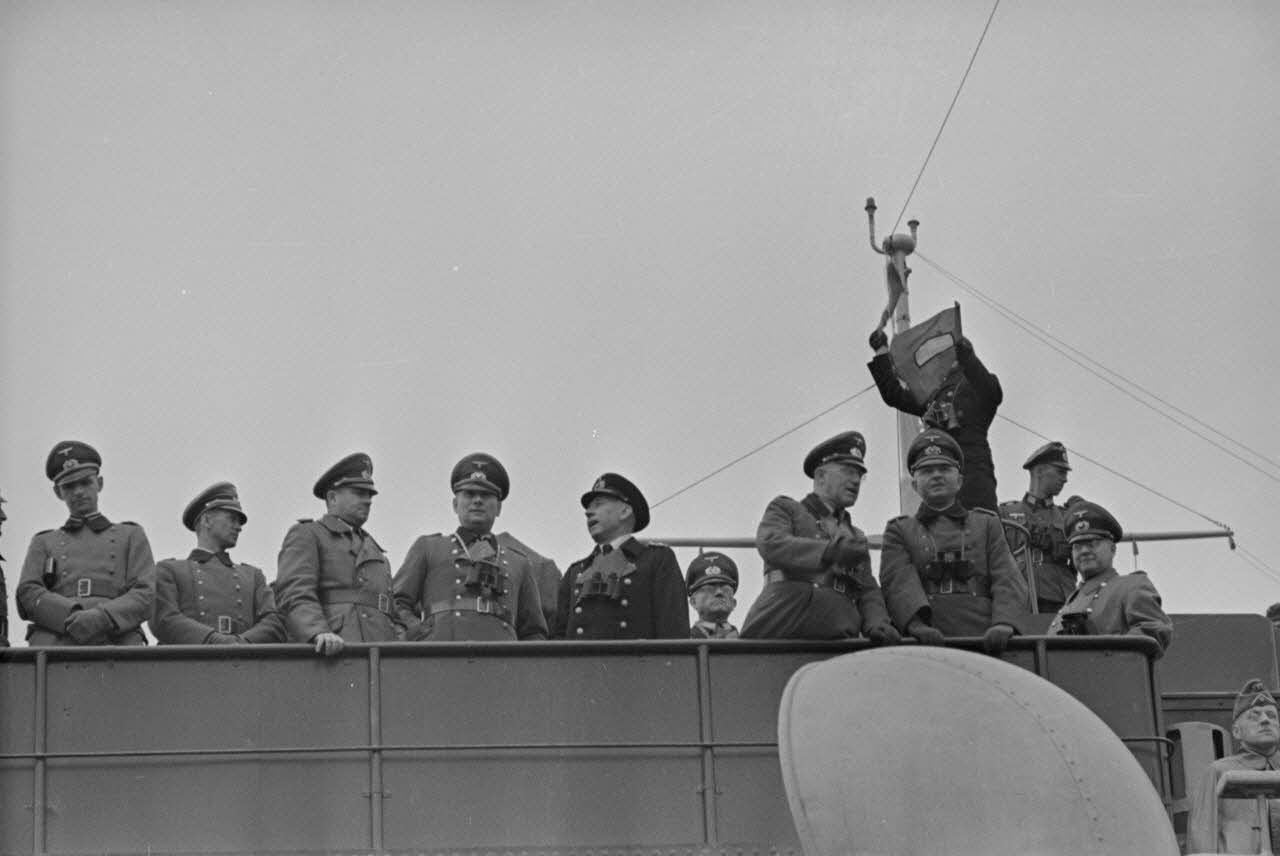 Le général Friedrich Dollmann et l'état-major de la 7e armée allemande (AOK 7) sur le pont d'un navire lors de manoeuvres d'exercice (opération Seelöwe).