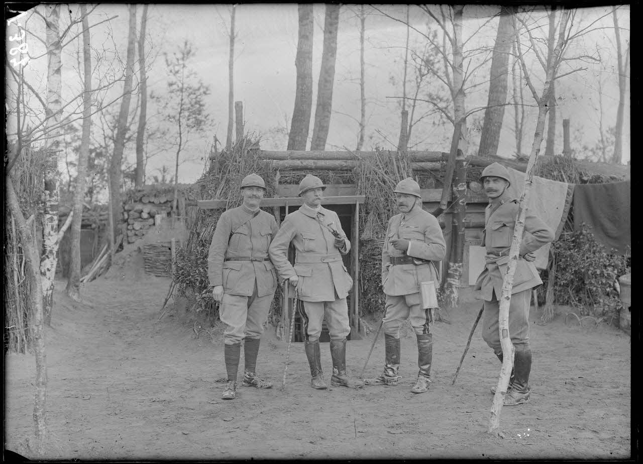 - Dans le secteur 137, le général Guignabaudet, commandant de la 2e DI (division d'infanterie) et le général de La Porte d'Hulst, commandant de la 55e DI (division d'infanterie de réserve), sont à leur état-major et inspectent les lignes françaises.