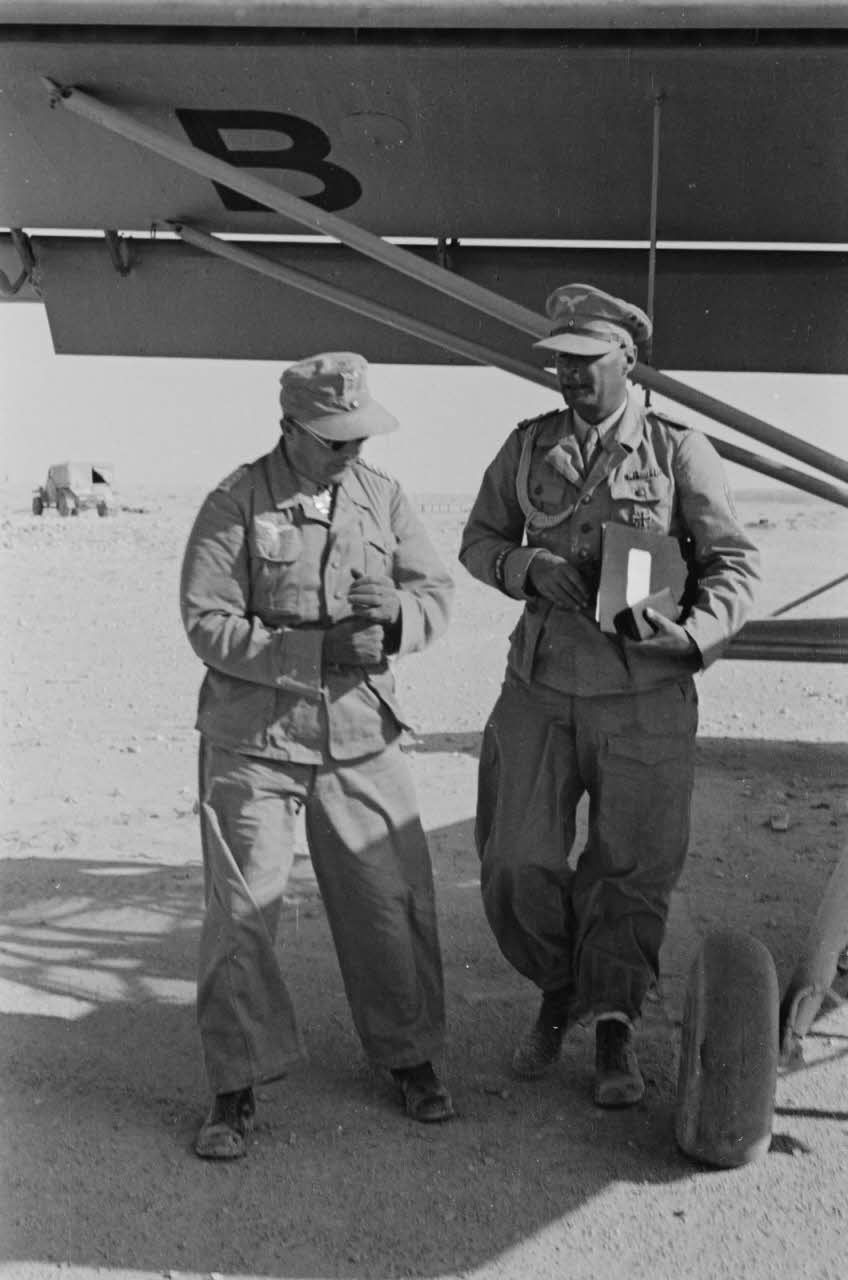 Le général des forces aériennes allemandes (Fliegerführer Afrika), Hans Seidemann se pose à bord d'un Fi-156 "Storch".