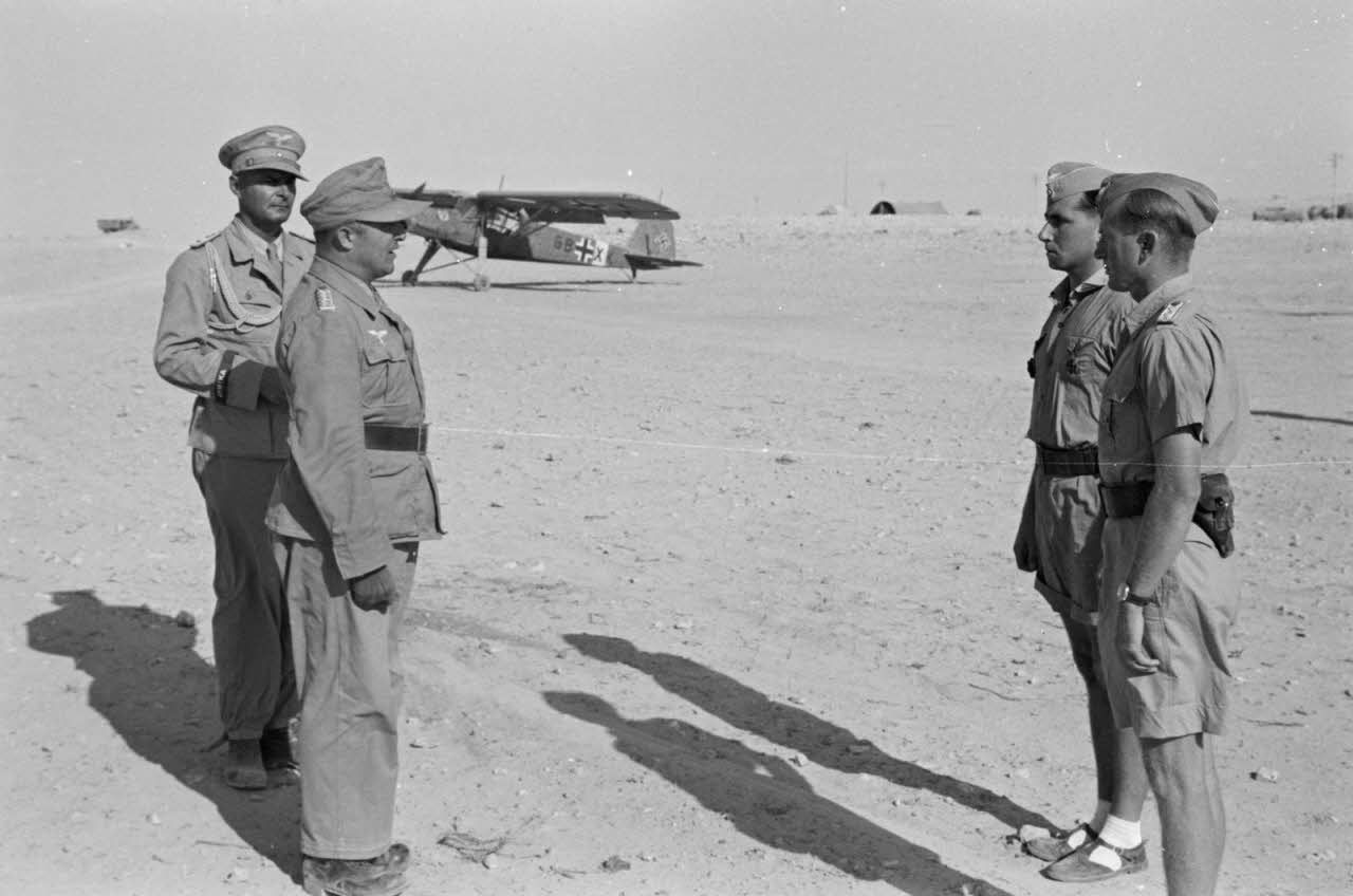 Le général des forces aériennes allemandes (Fliegerführer Afrika), Hans Seidemann se pose à bord d'un Fi-156 "Storch".