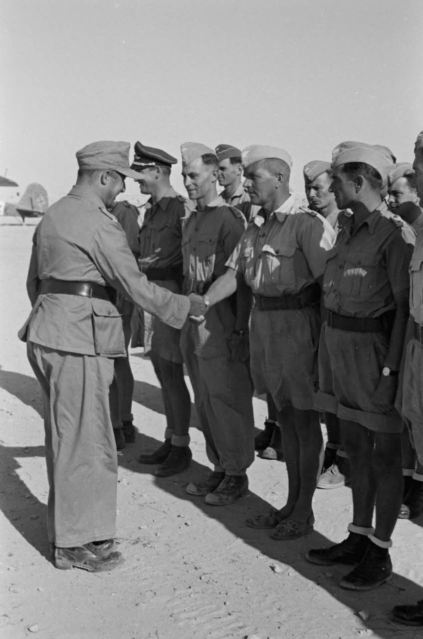 L'arrivée du général Seidemann à bord d'un Storch codé GB+XK (DAA 2503 L01 à L04). Le capitaine (Hauptmann) Bernhard Hamester (Ritterkreuz le 03/09/42) alors Staffelkapitän au III.Sturzkampfgeschwader StG-3. Remise de la Ritterkreuz au capitaine Martin Mossdorf. Le colonel (Obersleutnant) Walter Sigel, commandant de l'escadrille (Geschwaderkommodore) est salué par le général Seidemann.
