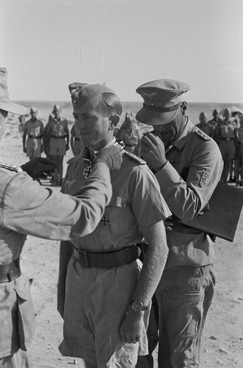 Remise de croix de chevalier de la croix de fer (Ritterkreuz) aux capitaines Mossdorf et Hamester.