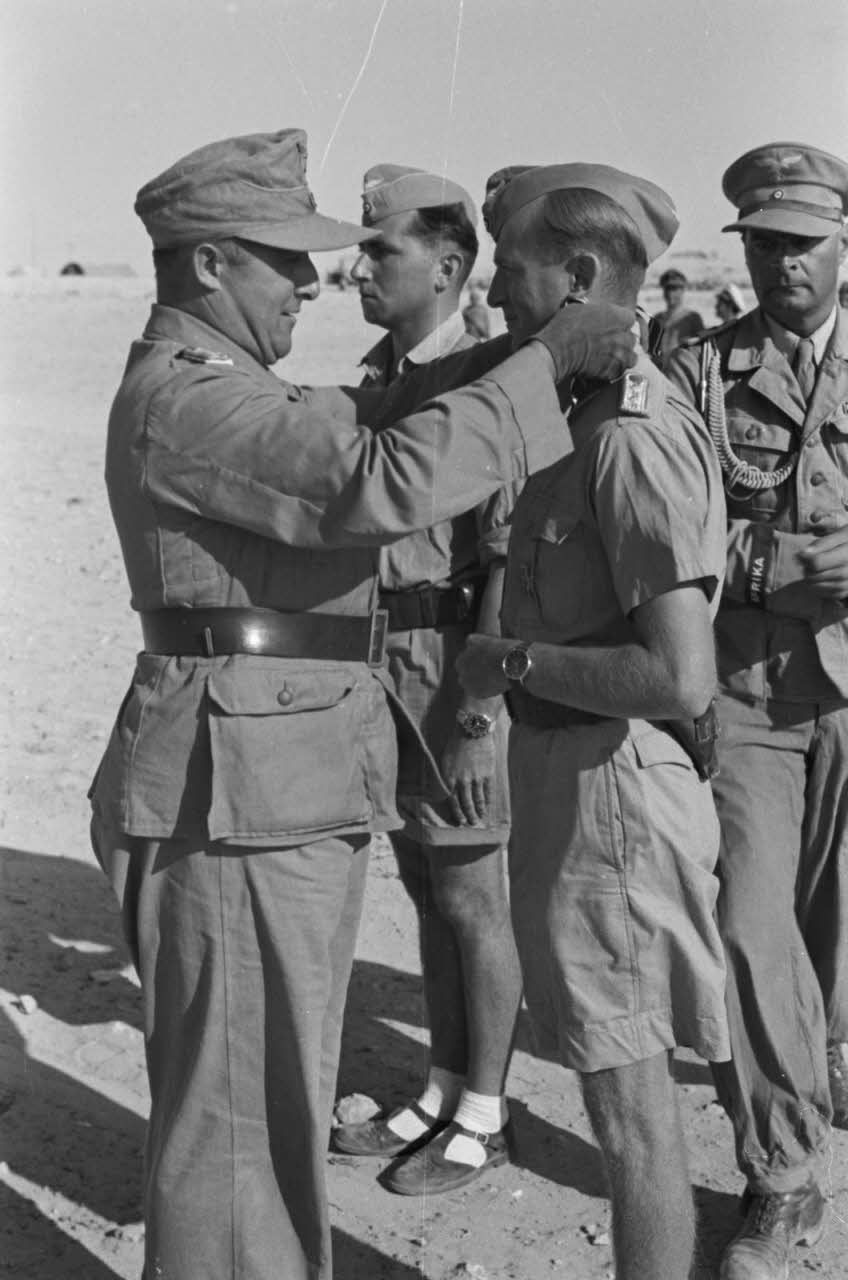 Remise de croix de chevalier de la croix de fer (Ritterkreuz) aux capitaines Mossdorf et Hamester.