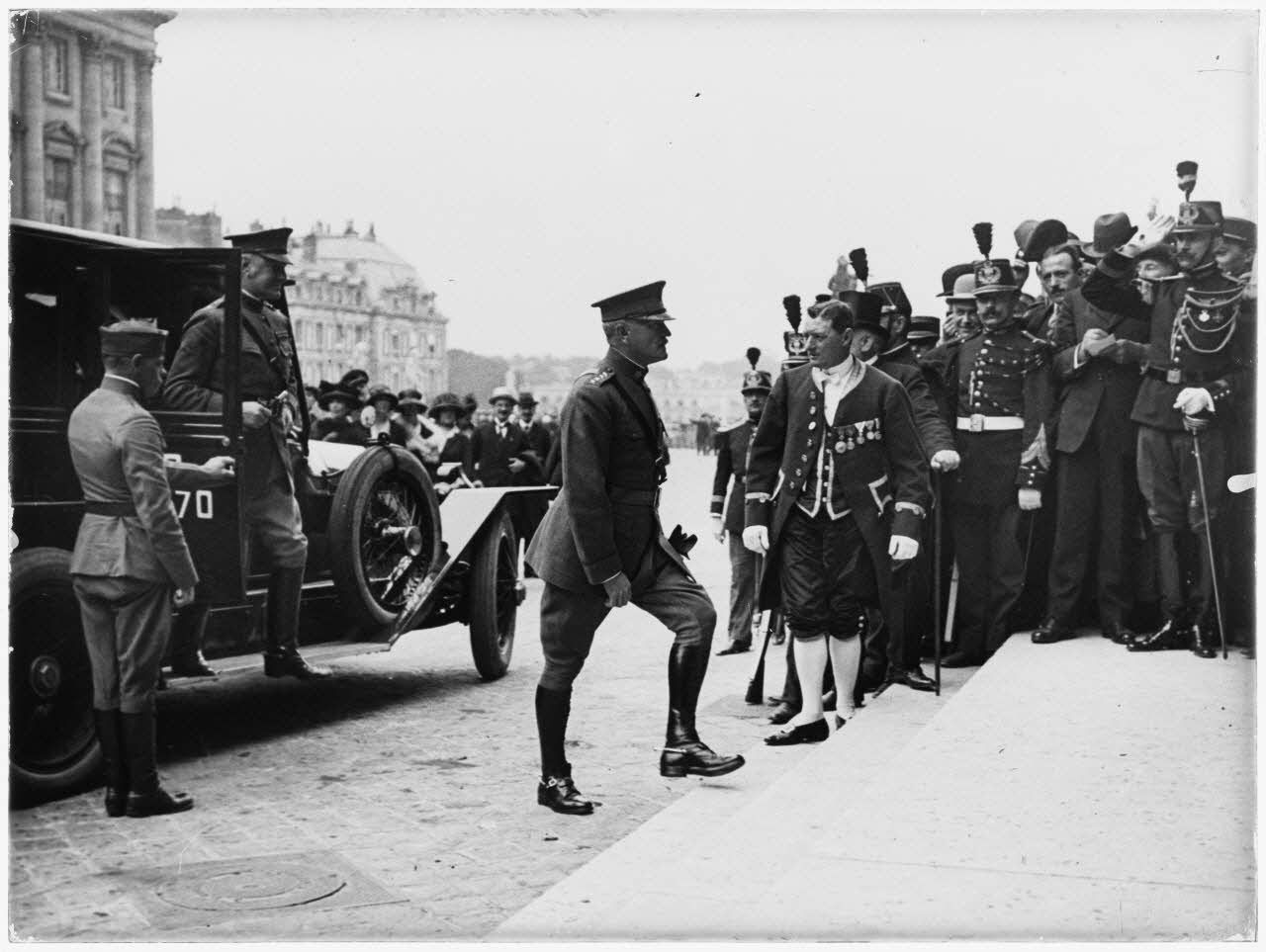 D66-32-301 : Le général Pershing entre au Palais de Versailles pour la signature du traité de paix. 1919.