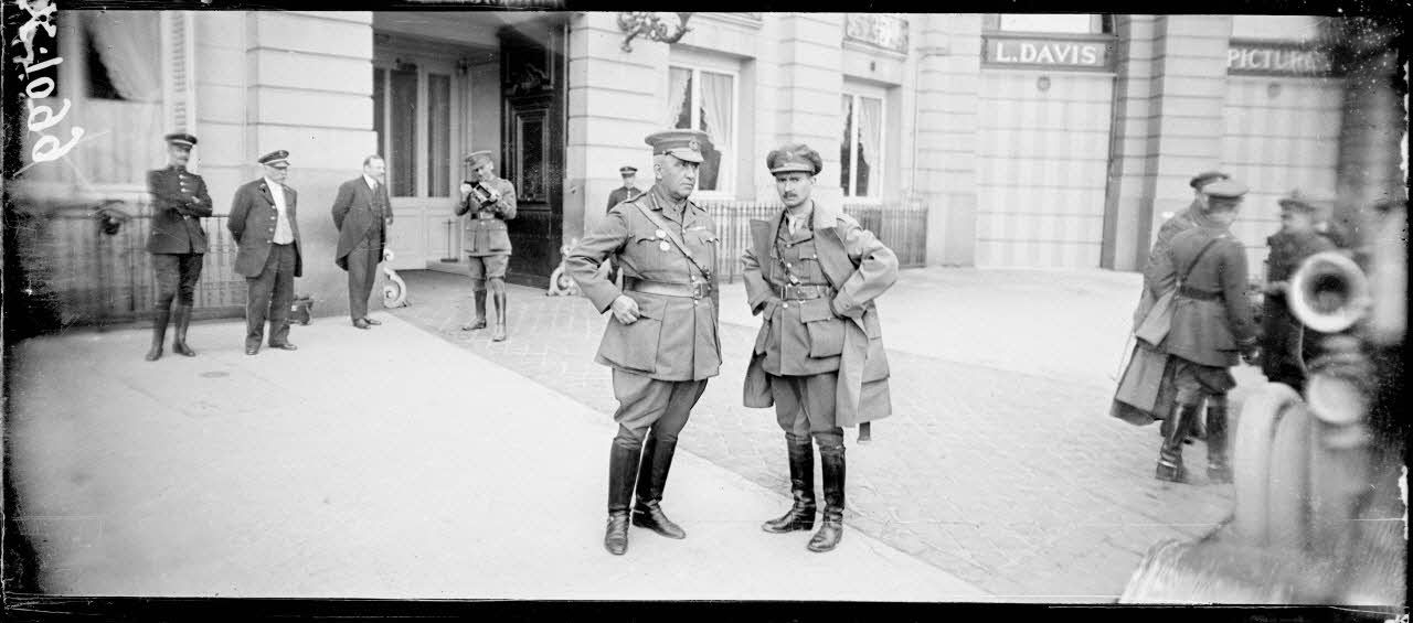 Paris, 20 août 1916. Le général Sam Hughes et son officier d'ordonnance.
