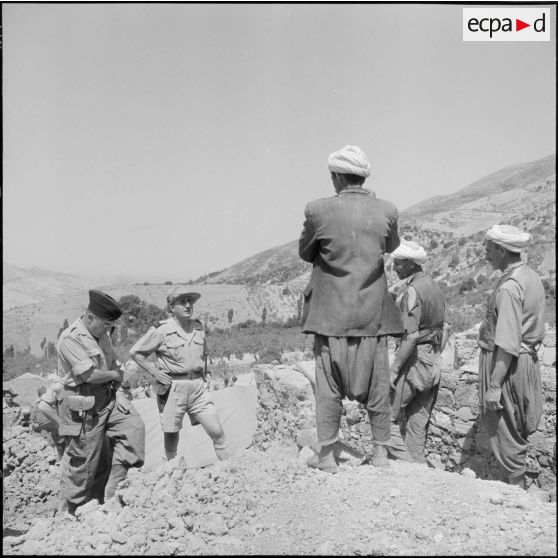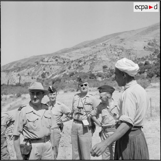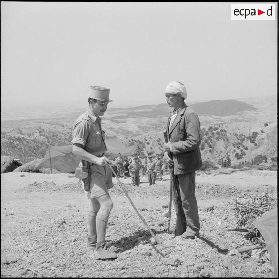 Le lieutenant Godignon et le chef des harkas de Bezzit en conversation.