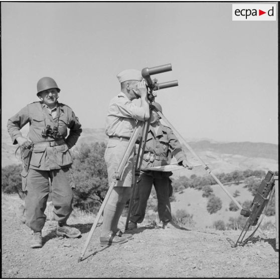 Le général Schumaker observant le douar Beni-Fouda au binoculaire.