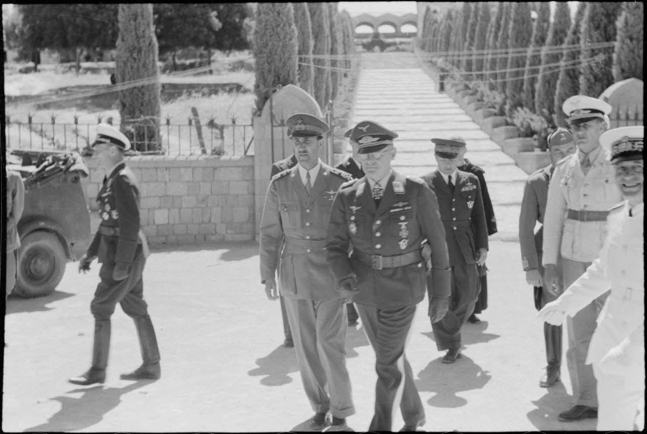 Le Generalleutnant Martin Fiebig visite le monastère du Mont Filérimos en compagnie de l'amiral Inigo Campioni et de son état-major.