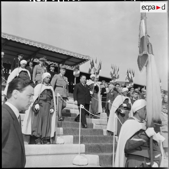 Cette cérémonie s'est déroulée sous la haute surveillance de monsieur le ministre de l'Algérie, Robert Lacoste, et du général d'armée Raoul Salan, commandant supérieur interarmées et commandant la 10ème région militaire.
