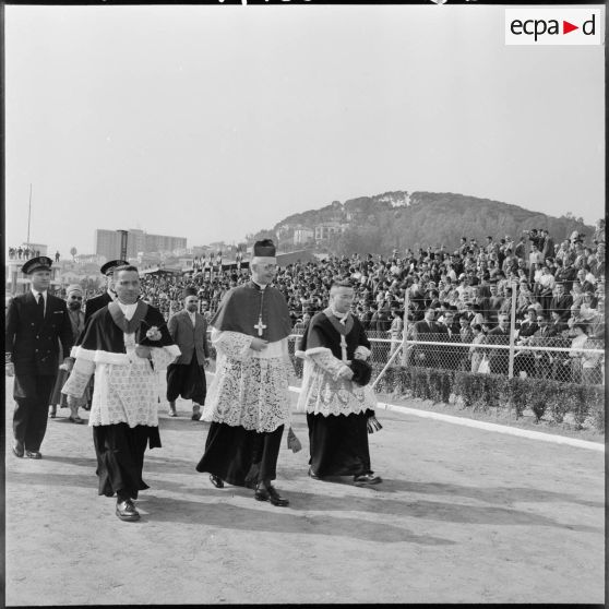 Monseigneur Duval, archevêque d'Alger, quitte le stade Tagarin.