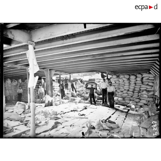 Le Havre. Déchargement d'un navire de sucre. Une cale en voie de déchargement.