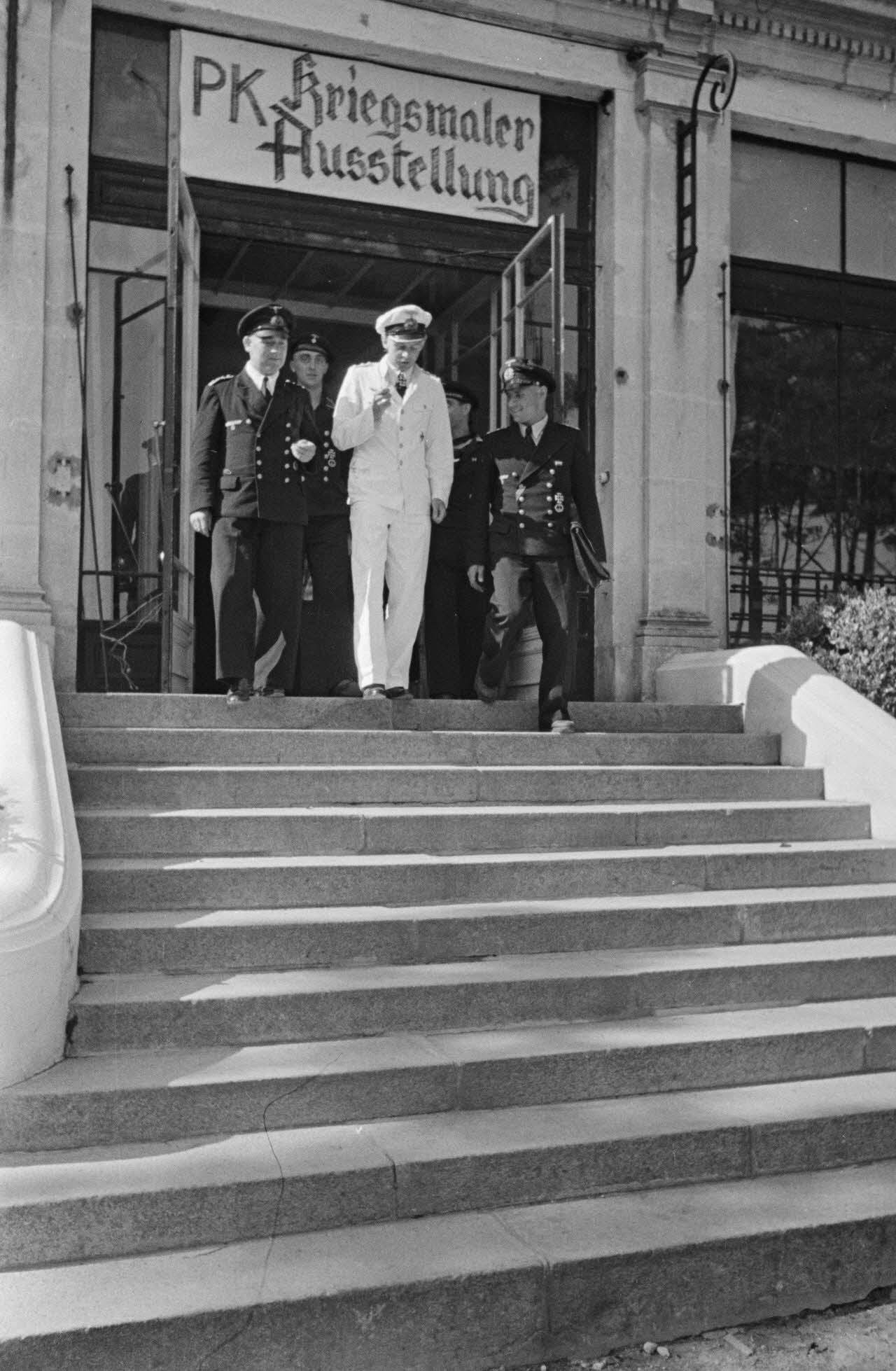 Les sous-mariniers Engelbert Endrass, Claus Korth, Heinrich Lehmann-Willenbrock, Erich Topp et Herbert Kuppisch entrent dans l'hôtel Royal de La Baule où a lieu une exposition de peintres de guerre.