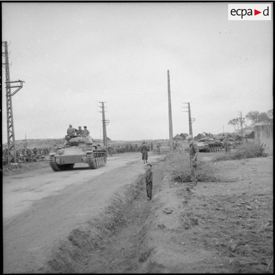 Colonne de chars M24 Chaffee le long de la route en direction de Mao Khé.