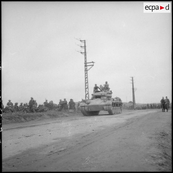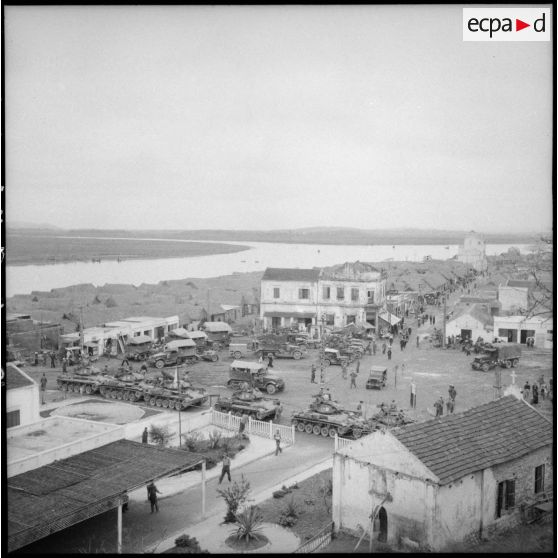 Rassemblement des soldats et des chars M24 Chaffee du 1er RCh à Sept Pagodes.