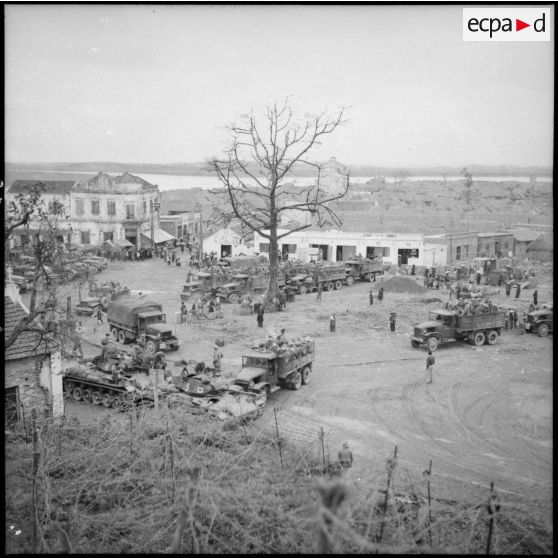 Rassemblement des soldats et des véhicules à Sept Pagodes.