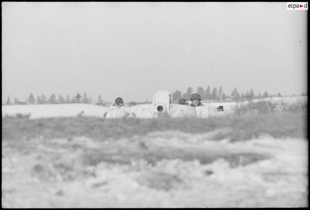 La progression de Panzergrenadiers dans la neige.