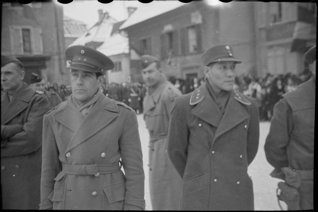 Le 14 janvier 1945, une délégation d'attachés militaires étrangers, en visite sur le front d'Alsace, participe à une cérémonie militaire à Masevaux en présence du général de division Marcel Carpentier, commandant la 2e DIM.