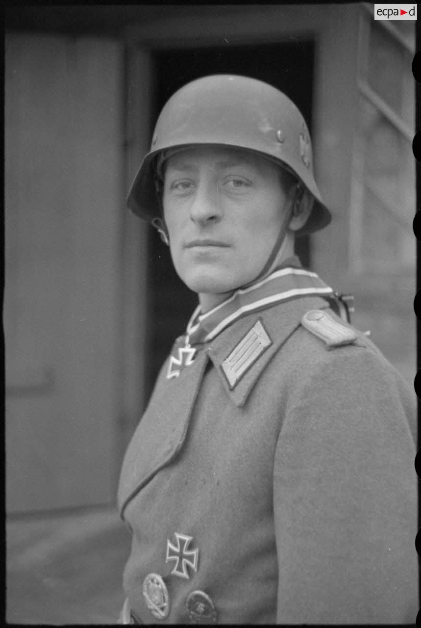 Le lieutenant (Leutnant) Albert Ernst du 1er escadron du 519e (1./s.Pz.Jäg.Abt-519) décoré de la croix de chevalier de la croix de fer (Ritterkreuz).