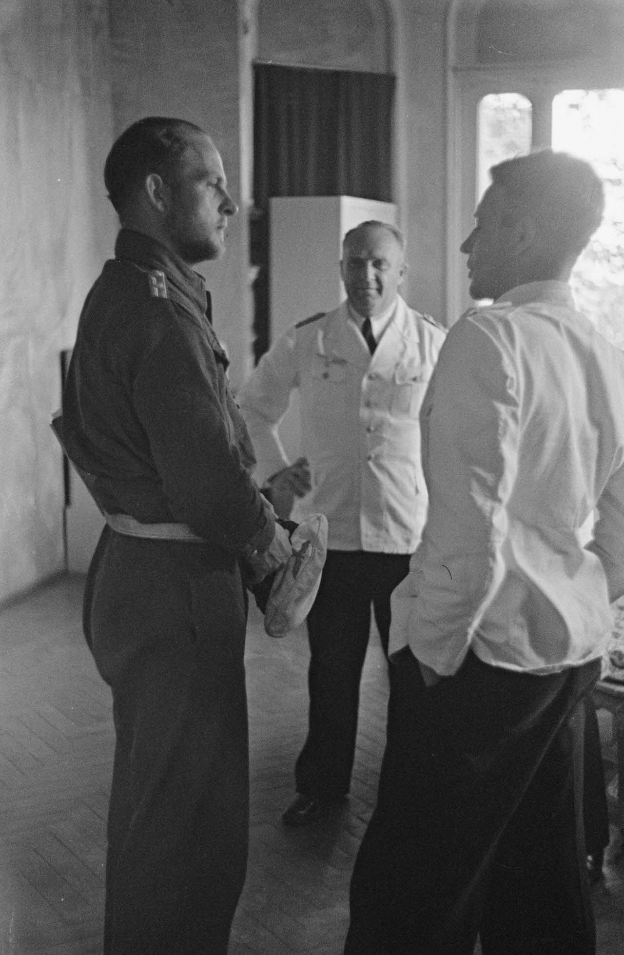 Le lieutenant (Oberleutnant zur See) Erich Topp est reçu au quartier général des sous-marins allemands de Lorient pour la remise de sa croix de chevalier de la croix de fer (Ritterkreuz).