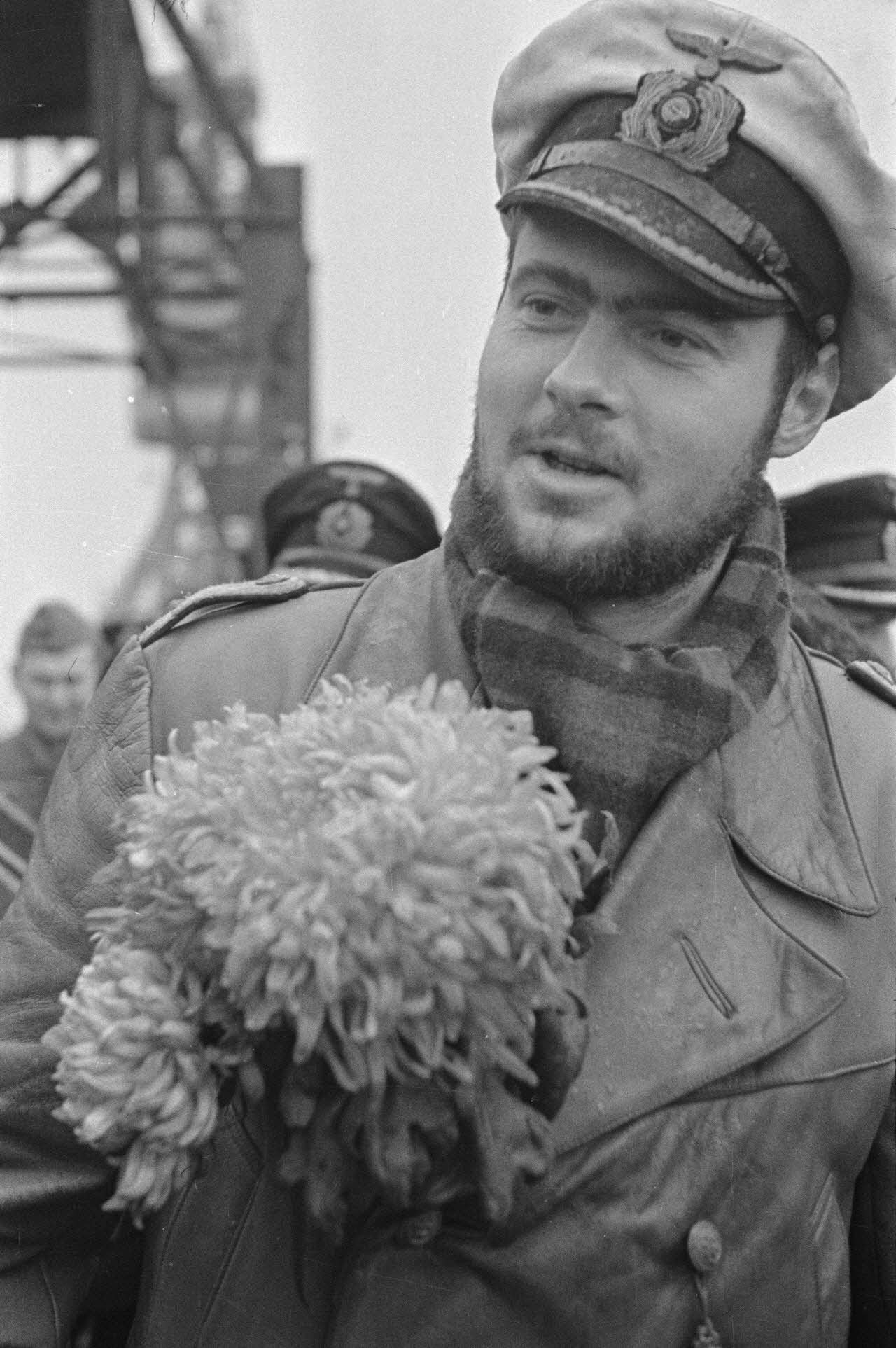 De retour au port de Saint-Nazaire, le lieutenant (Oberleutnant zur See) Horst Elfe commandant du sous-marin U-93 rencontre des officiers de la marine venus l'accueillir.