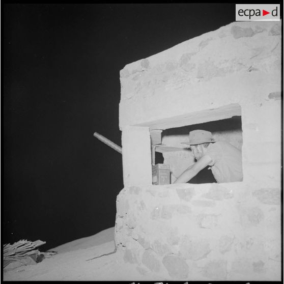 Le soldat Marcel Papis de la 1re compagnie du 93e régiment d'infanterie (RI) en surveillance au poste d'Iril Bou Rioul.