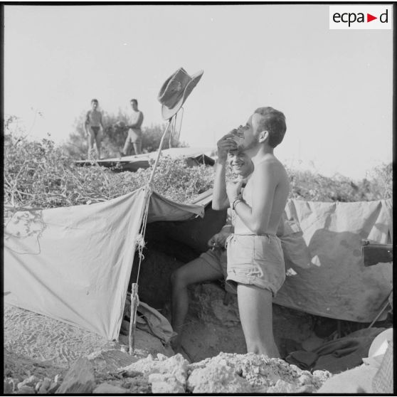 Le soldat Jean-Pierre Defoucault de la 1re compagnie du 93e régiment d'infanterie (RI) se rasant.