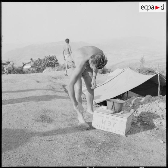 Le soldat Michel Demoy de la 1re compagnie du 93e régiment d'infanterie (RI) faisant sa toilette