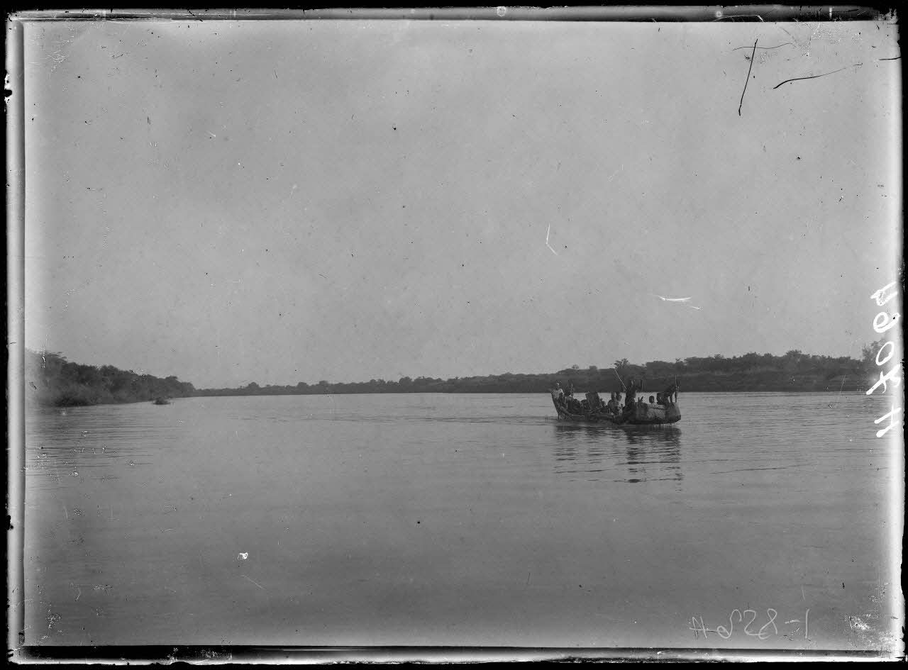 Après ce séjour sur le lac, la mission reprend le chemin du sud et remonte le cours du Chari. le convoi fait escale à Kobro, village déjà traversé à l'aller. Les tirailleurs accompagnant la mission se reposent sous leurs moustiquaires et l'opérateur photographie les cases. A Mouloua (Moulouang), en amont, on cultive le Nilé. A Partir de Kousseri, après le confluent du Chari et du Logone, la navigation se poursuit vers le sud en remontant le cours de ce dernier. Sur les bords du fleuve des bûcherons exploitent du bois de chauffage.