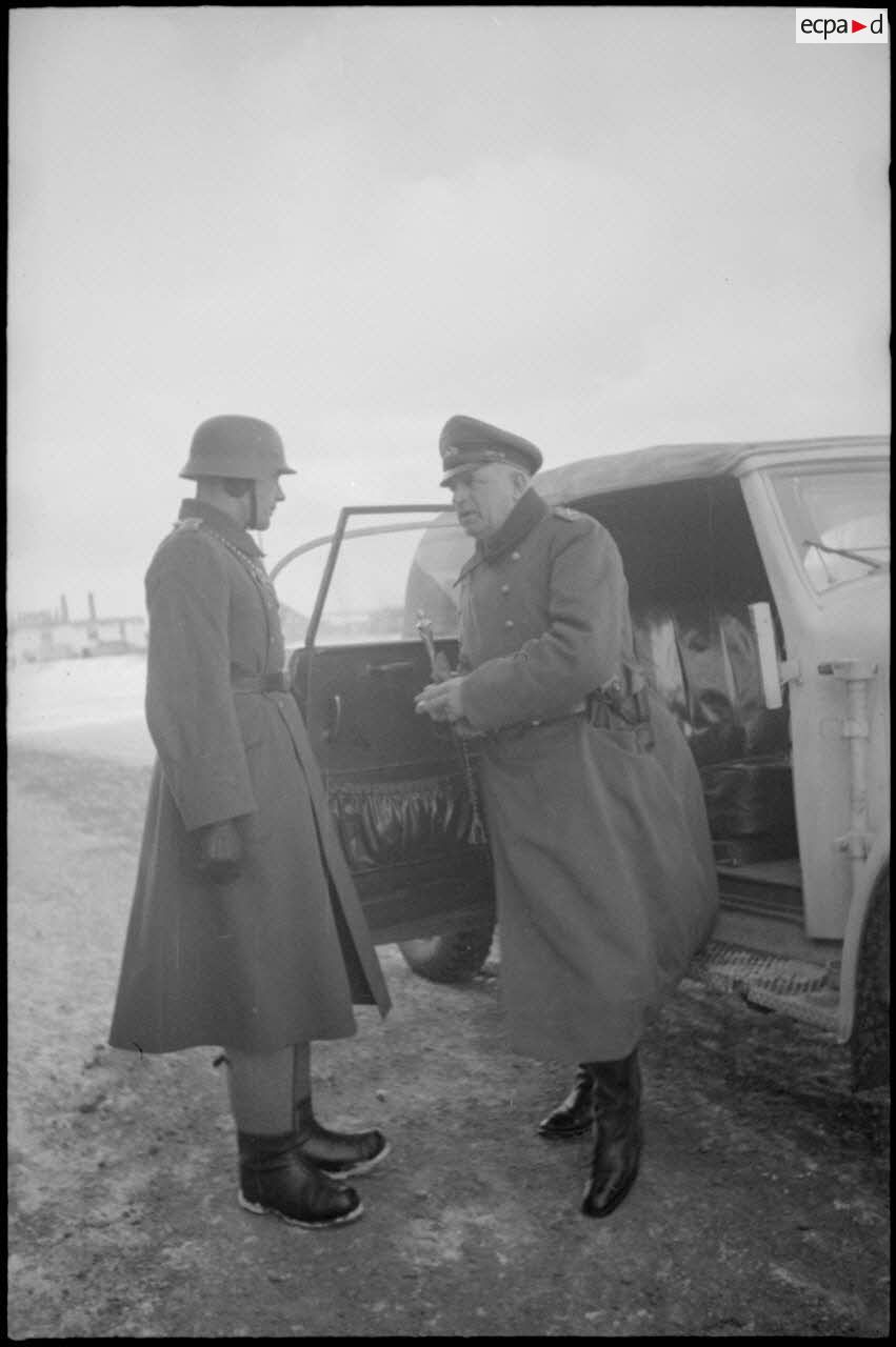 Coiffures et manteaux des officiers supérieurs lors de la réunion au quartier général de la 3.Panzer-Armee.