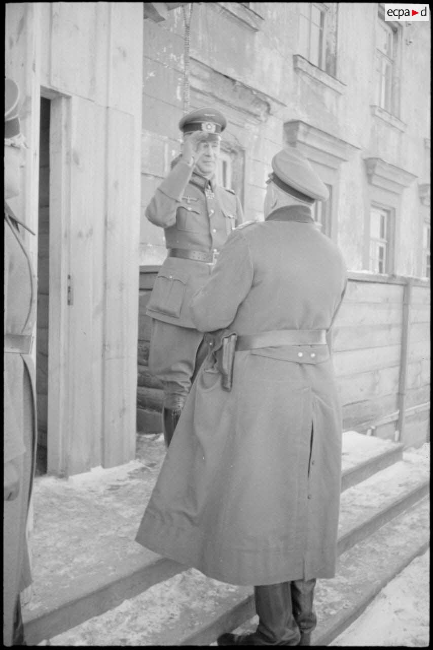 Le maréchal Ernst Busch, commandant allemand du groupe d'armées Centre arrive au PC de la 3e Panzer-Armee.