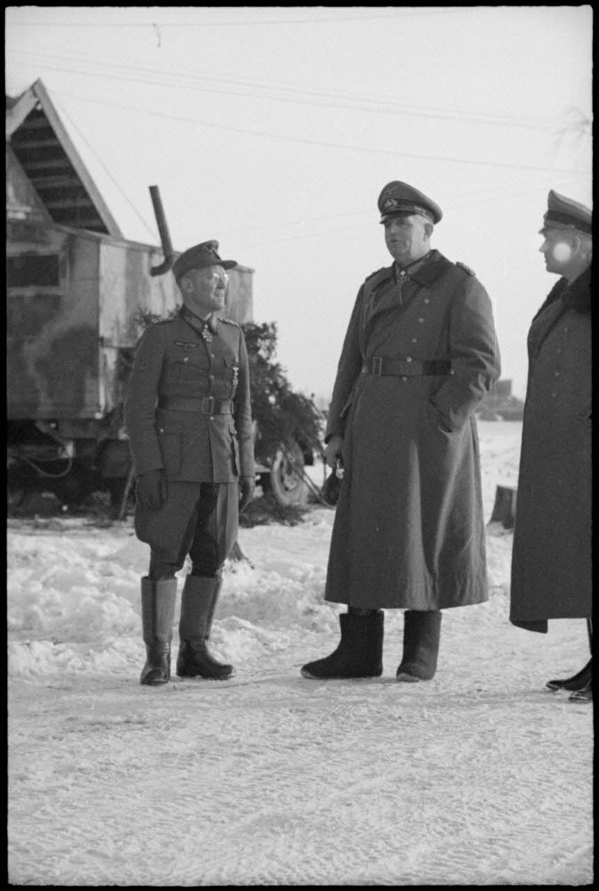 Le maréchal (Generalfeldmarchall) Buch en présence du général (Generalleutnant) Helmut Thumm (commandant de la 5. Jäger. Division).