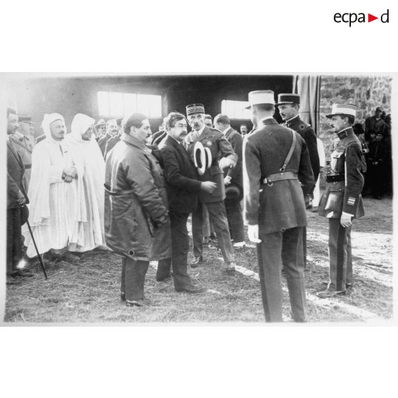 Le maréchal Hubert Lyautey présente des officiers à Aristide Briand.
