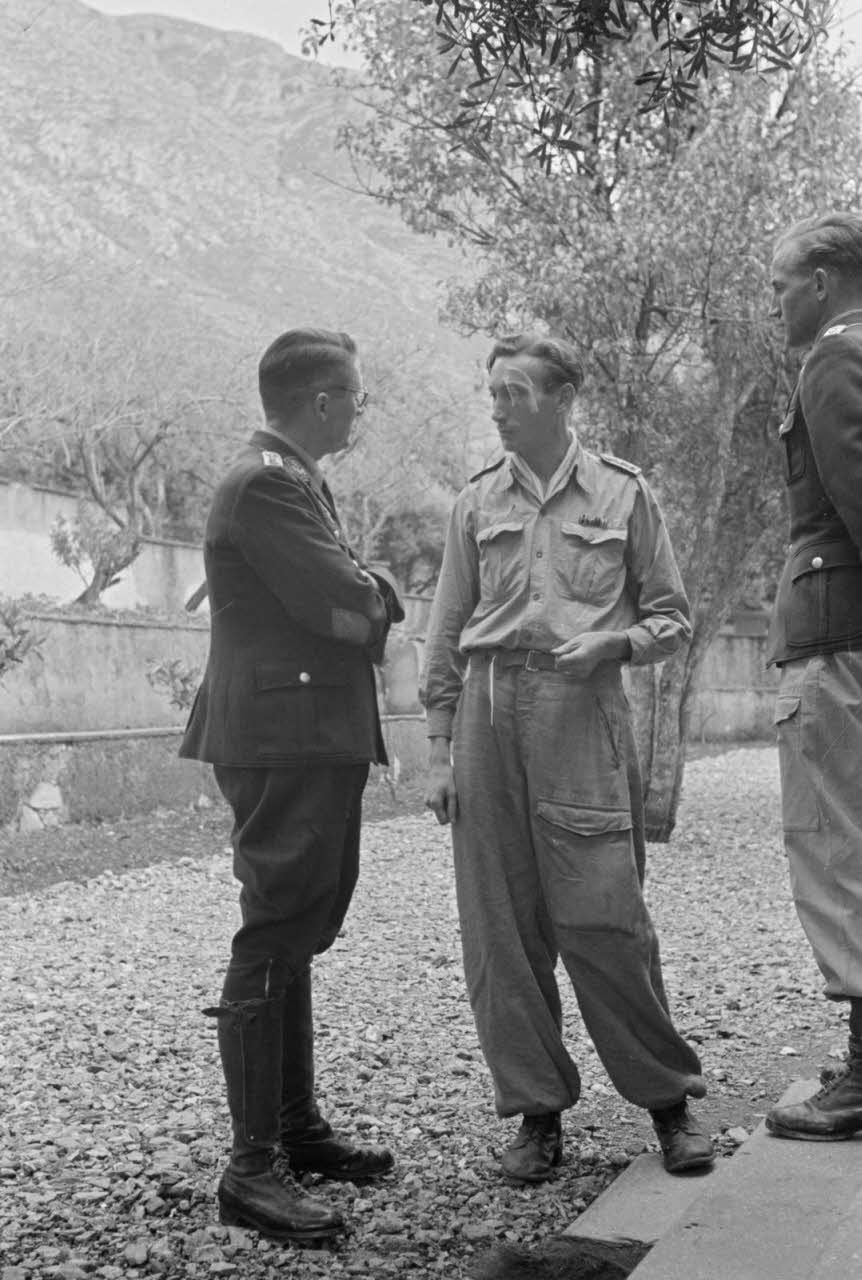 Le medecin Dr. Falke s'entretient avec le responsable du centre de repos de l'armée de l'air allemande de Kastelli (Kastamoniza), un adjudant-chef (Oberfeldwebel).