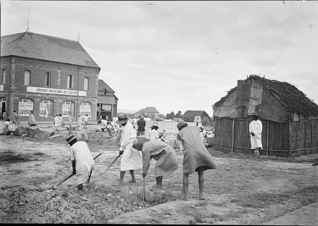 Edgard Imbert (1873-1915), sous-lieutenant de l'infanterie coloniale et photographe est en poste à Madagascar du 10 février 1900 au 23 avril 1902. Arrivé à Tananarive, il photographie l'architecture de la ville, la population, la vie quotidienne et notamment le marché.