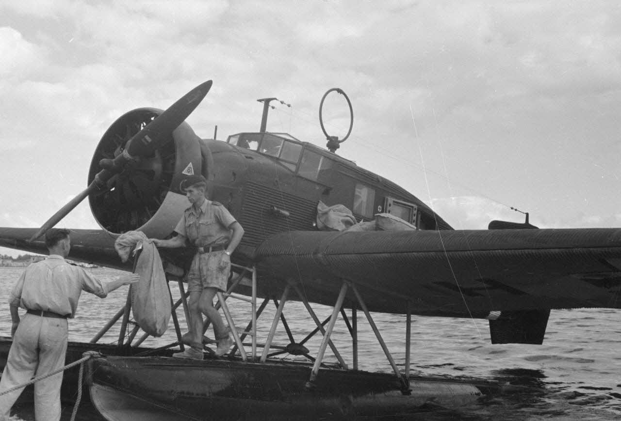Le pilote d'un avion Junkers W 34 apporte le courrier des membres de l'unité de sauvetage en mer (Seenotstaffel).