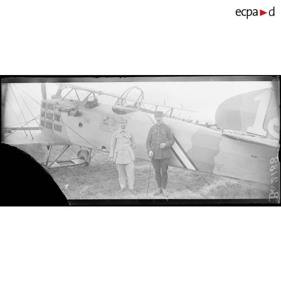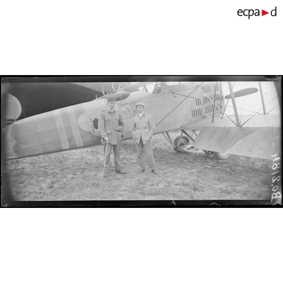 Roissy-en-France (Seine-et-Oise), camp d'aviation. Le lieutenant Villemay, 50 bombardements, et le lieutenant de Loisy, 67 bombardements et 1 avion. GB3 - BR128.