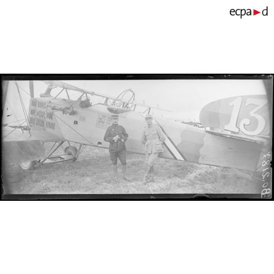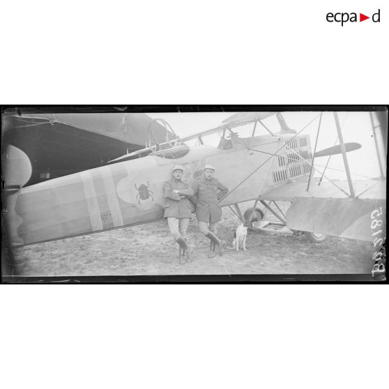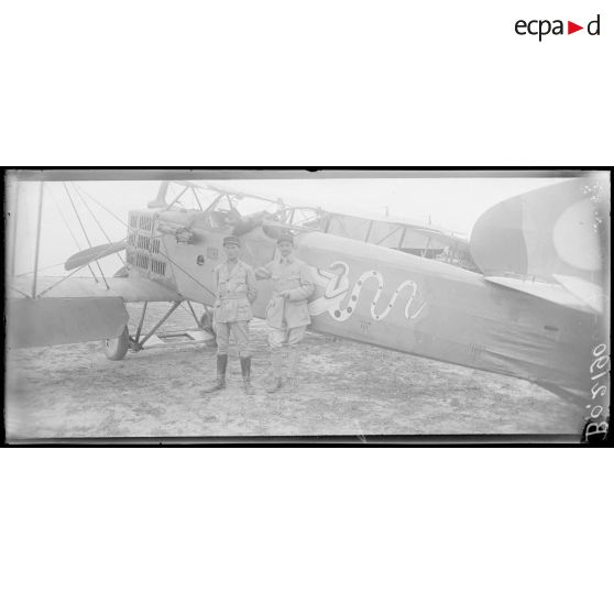 Roissy-en-France (Seine-et-Oise), camp d'aviation. Le lieutenant Drouet, 60 bombardements, 3 avions. L'adjudant Monard, mitrailleur. GB3 - BR 128.