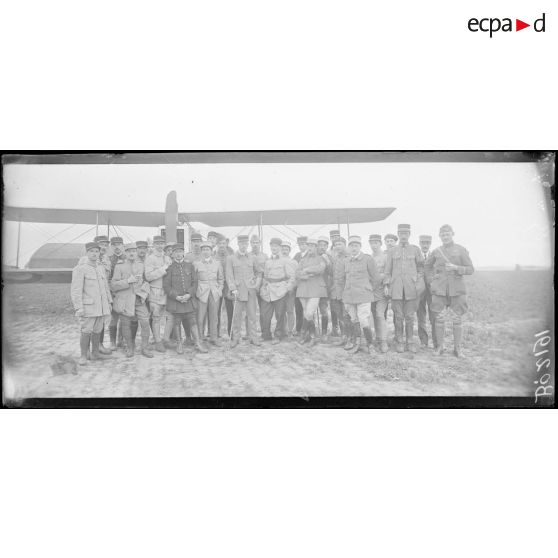 Mesnil-Amelot (Seine-et-Marne), le commandant Duseigneur commandant la 2e brigade de bombardement et ses officiers.