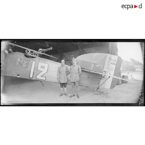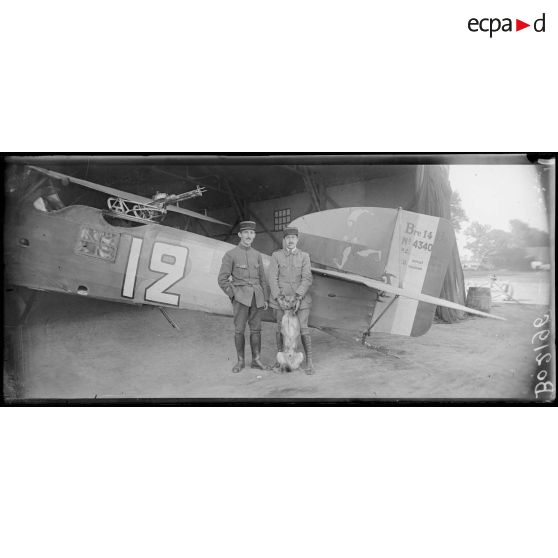 Mesnil-Amelot (Seine-et-Marne), camp d'aviation. Le lieutenant Gras, 30 bombardements et 4 avions. L'adjudant Lasserre, 30 bombardements et 3 avions. GB4 - BR 132.