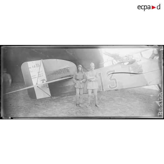Roissy-en-France (Seine-et-Oise), camp d'aviation. L'adjudant Vaneau, 70 bombardements, et l'adjudant Suzanne, 80 bombardements. GB3 - BR107.