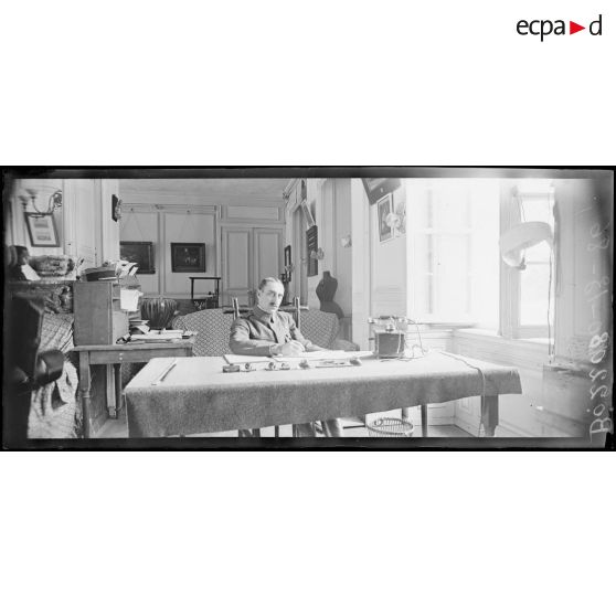 Le Plessis Belleville, le commandant Féquant commandant la division de bombardement à son bureau.