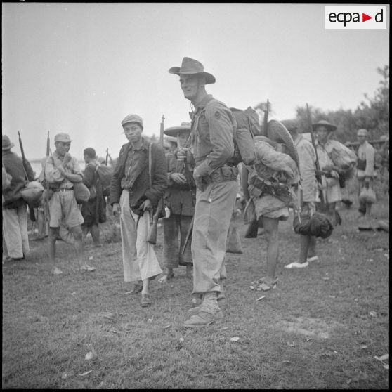 Débarquement de soldats des troupes nationalistes chinoises au Tonkin sous la garde de la Légion étrangère.