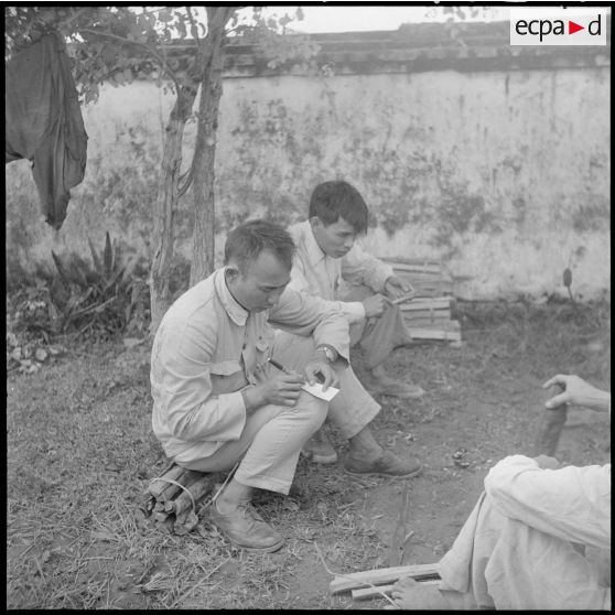Internés à Moncay, des soldats nationalistes chinois vaquent à leurs occupations.