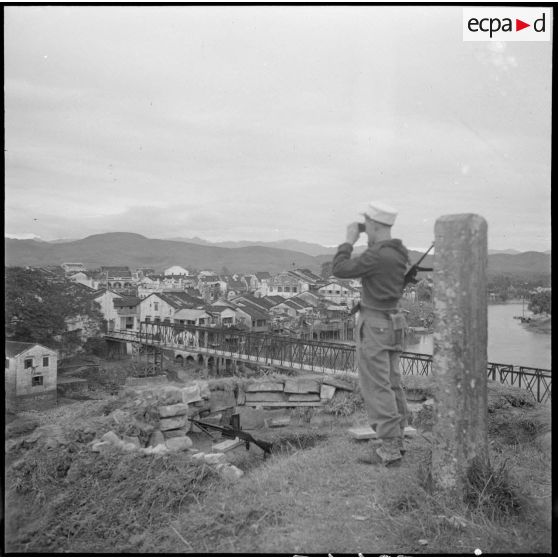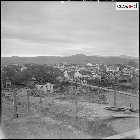 Vue du pont de Moncay, frontière avec la Chine, depuis un poste de surveillance de la Légion étrangère.