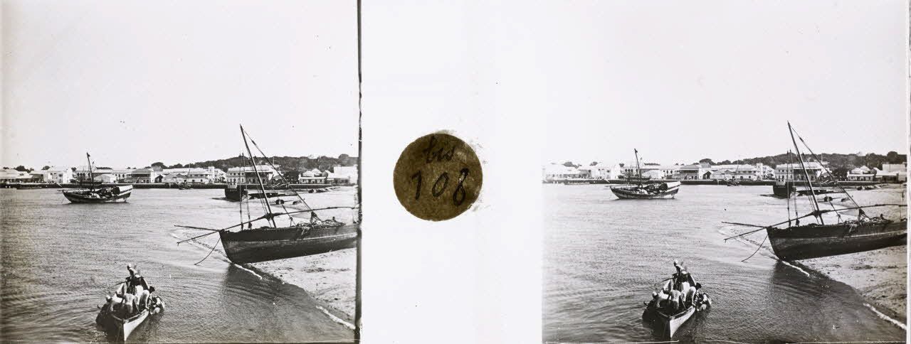 La pointe du Caïman à Majunga. Le bateau hydrographe "La Surprise".