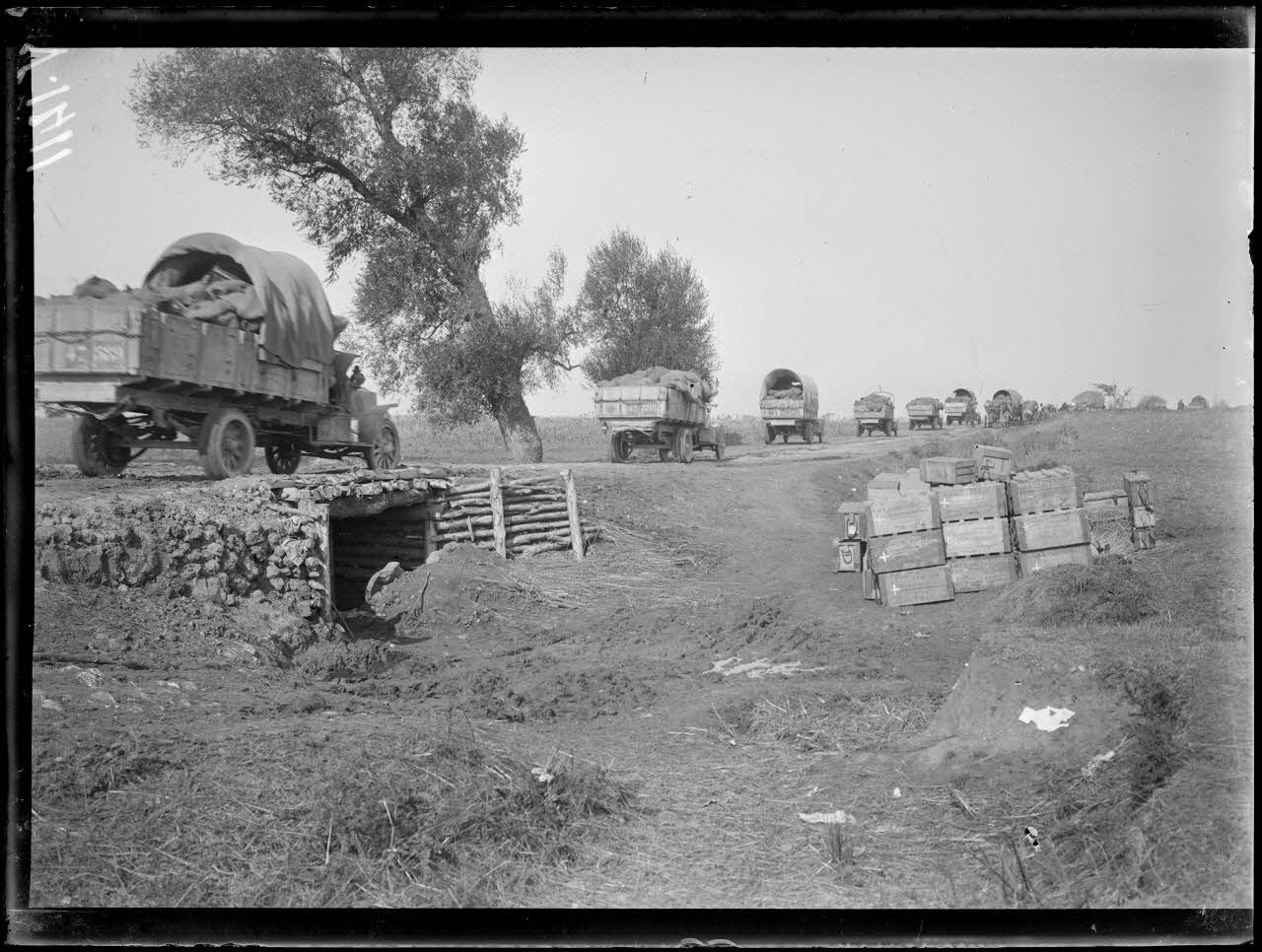 Près Rosna, sur la route de Monastir, convoi de la 156e division.