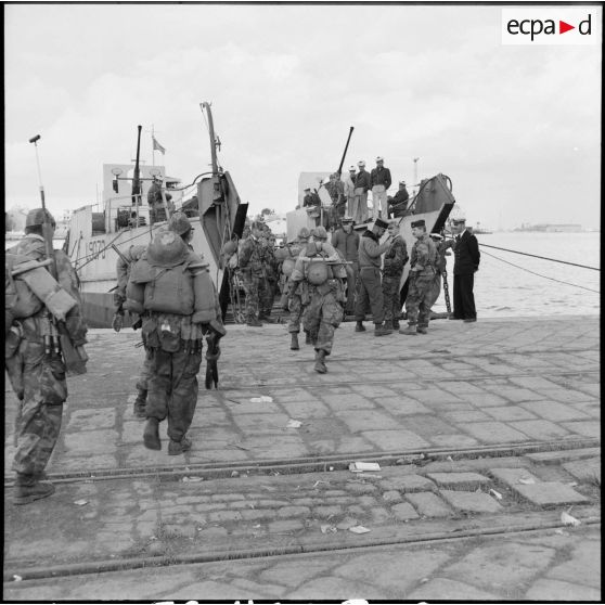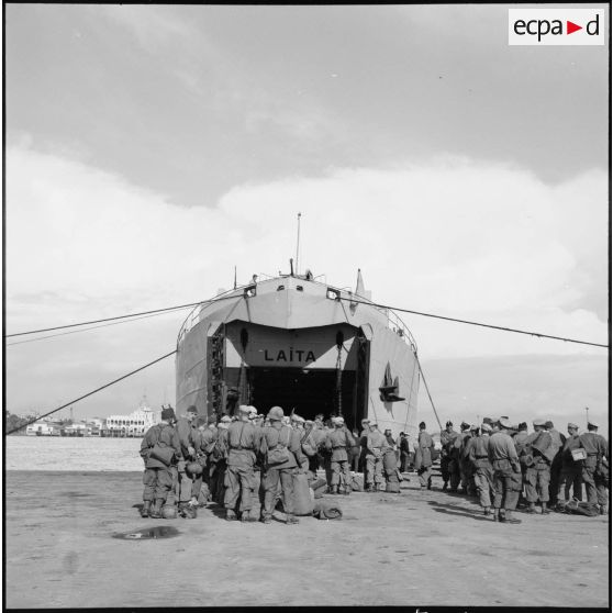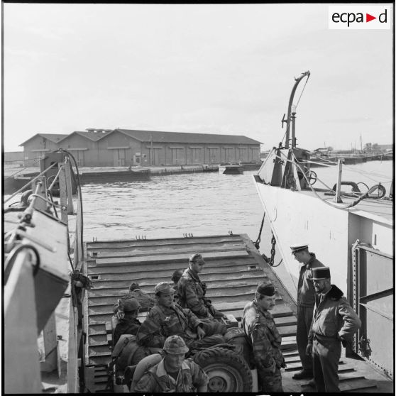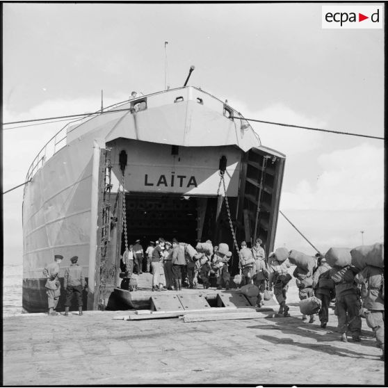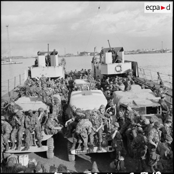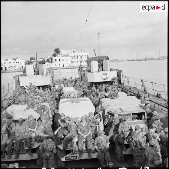 Rembarquement des derniers éléments blindés du 8e RD et d'une compagnie du 2e RPC à Port-Saïd.