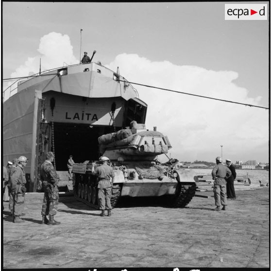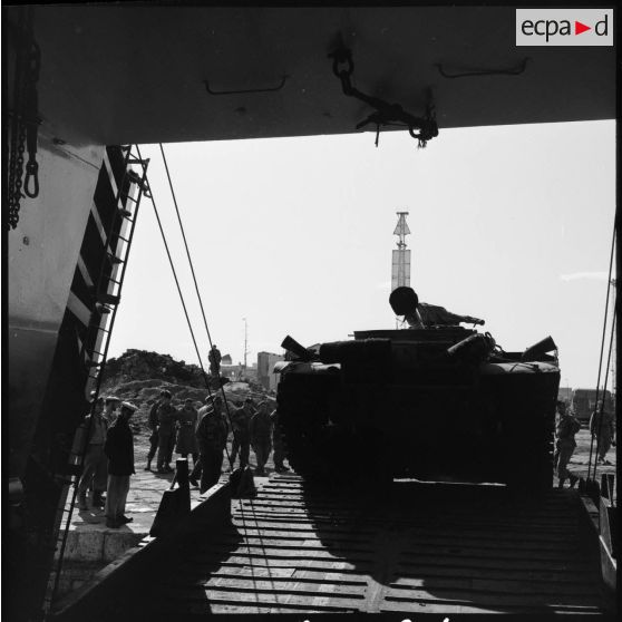 Le rembarquement des chars Patton du 8e RD à Port-Saïd.