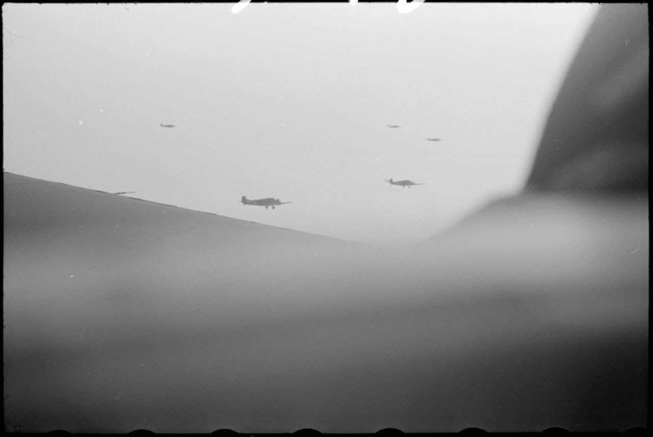 Le reporter Robert Schiffmann illustre le vol de transfert vers la Sicile à bord d'un avion de transport Junkers Ju-52.