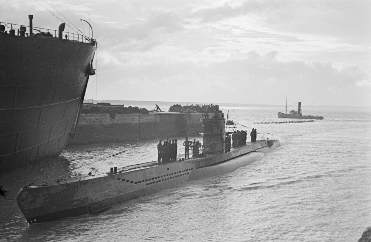 Le sous-marin U-93 rentre dans le port de Saint-Nazaire.